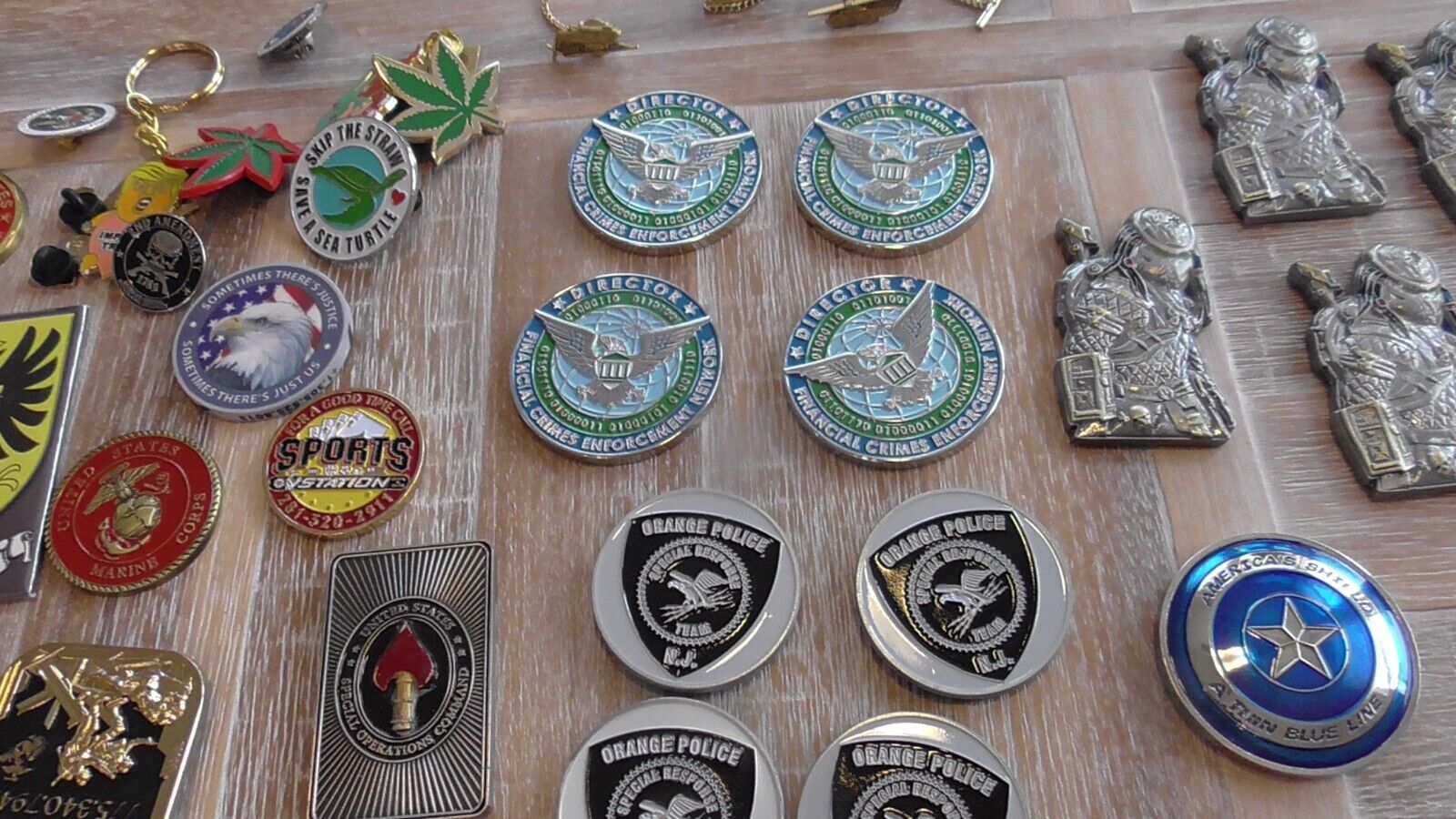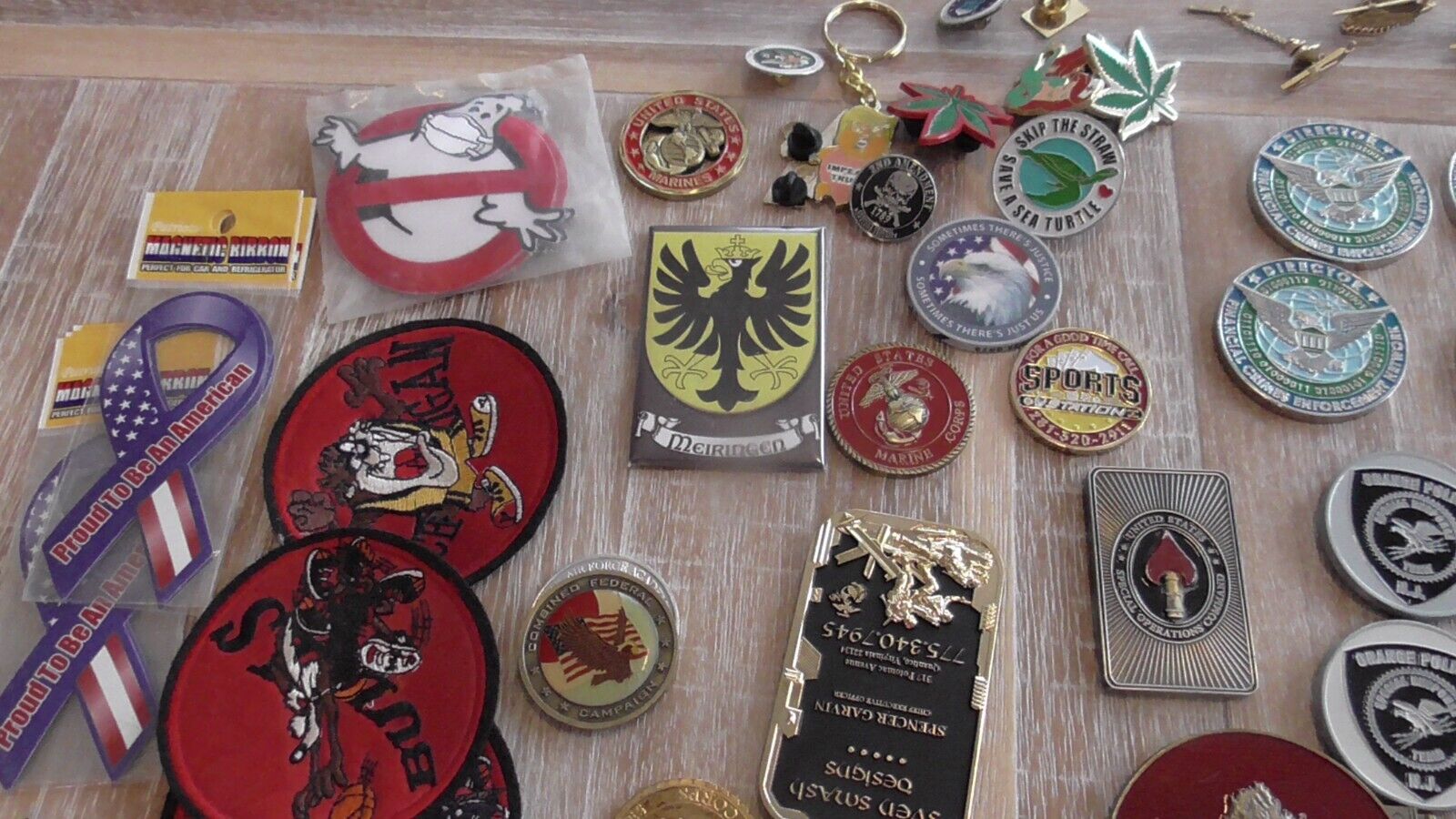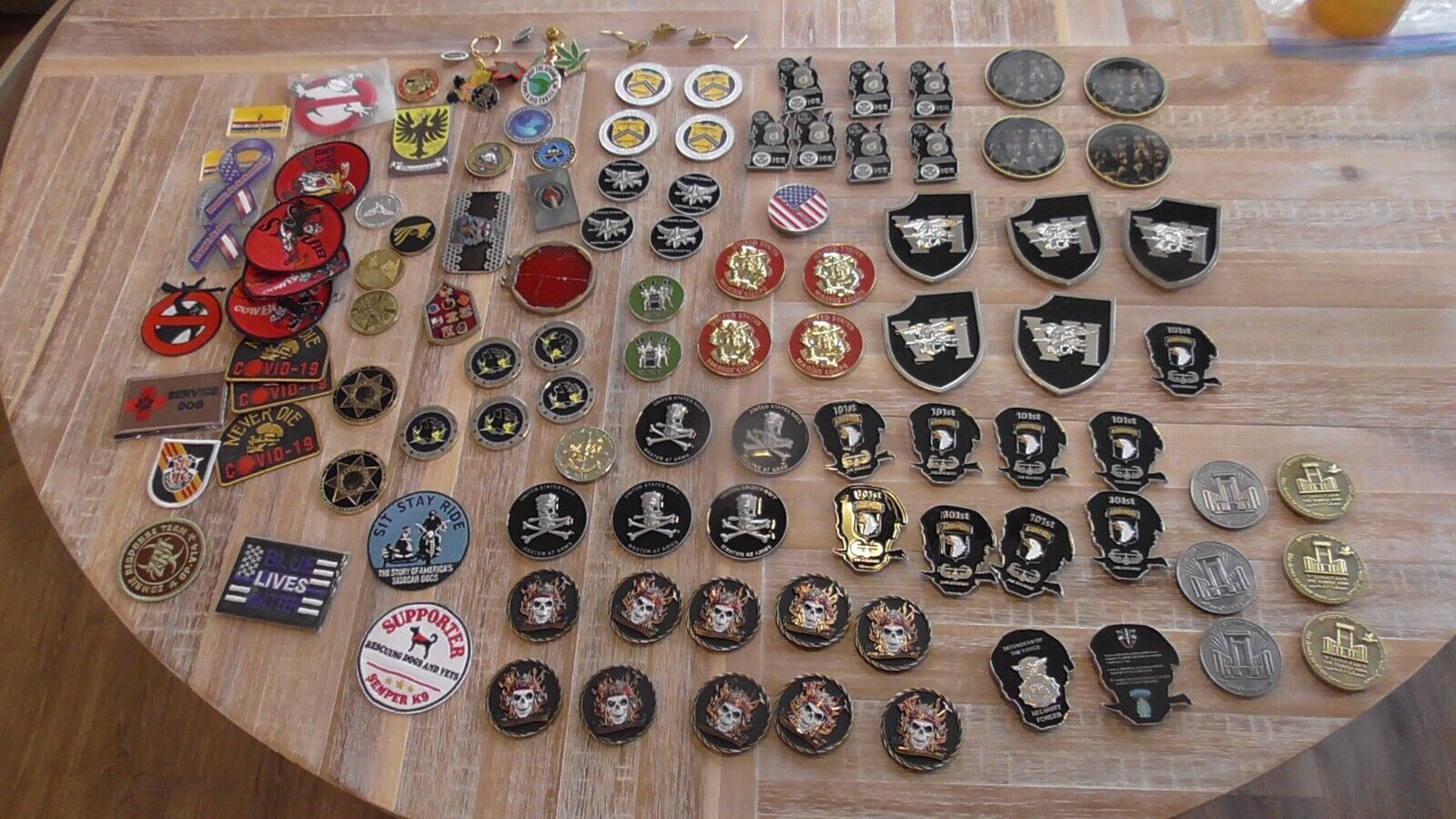 Huge Dealers Lot 150+ Challenge Coins Pin Patches MA USN Seal Army USMC POTUS SWAT FBI Police USAF