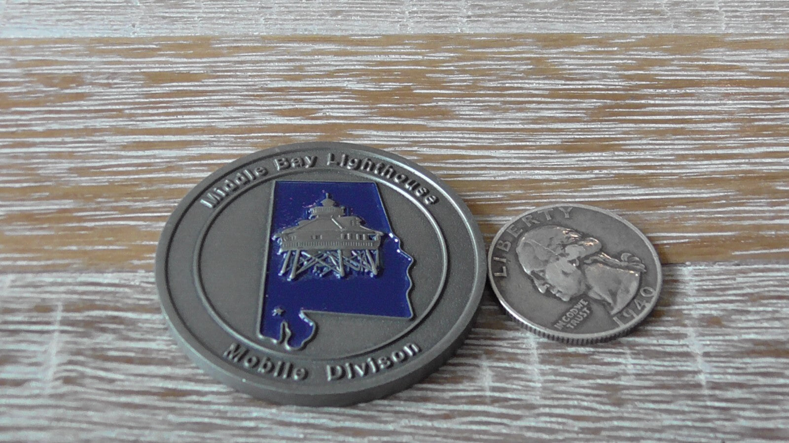 DOJ Federal Bureau of Investigation FBI Middle Bay Lighthouse Alabama Mobile Division Challenge Coin #B486