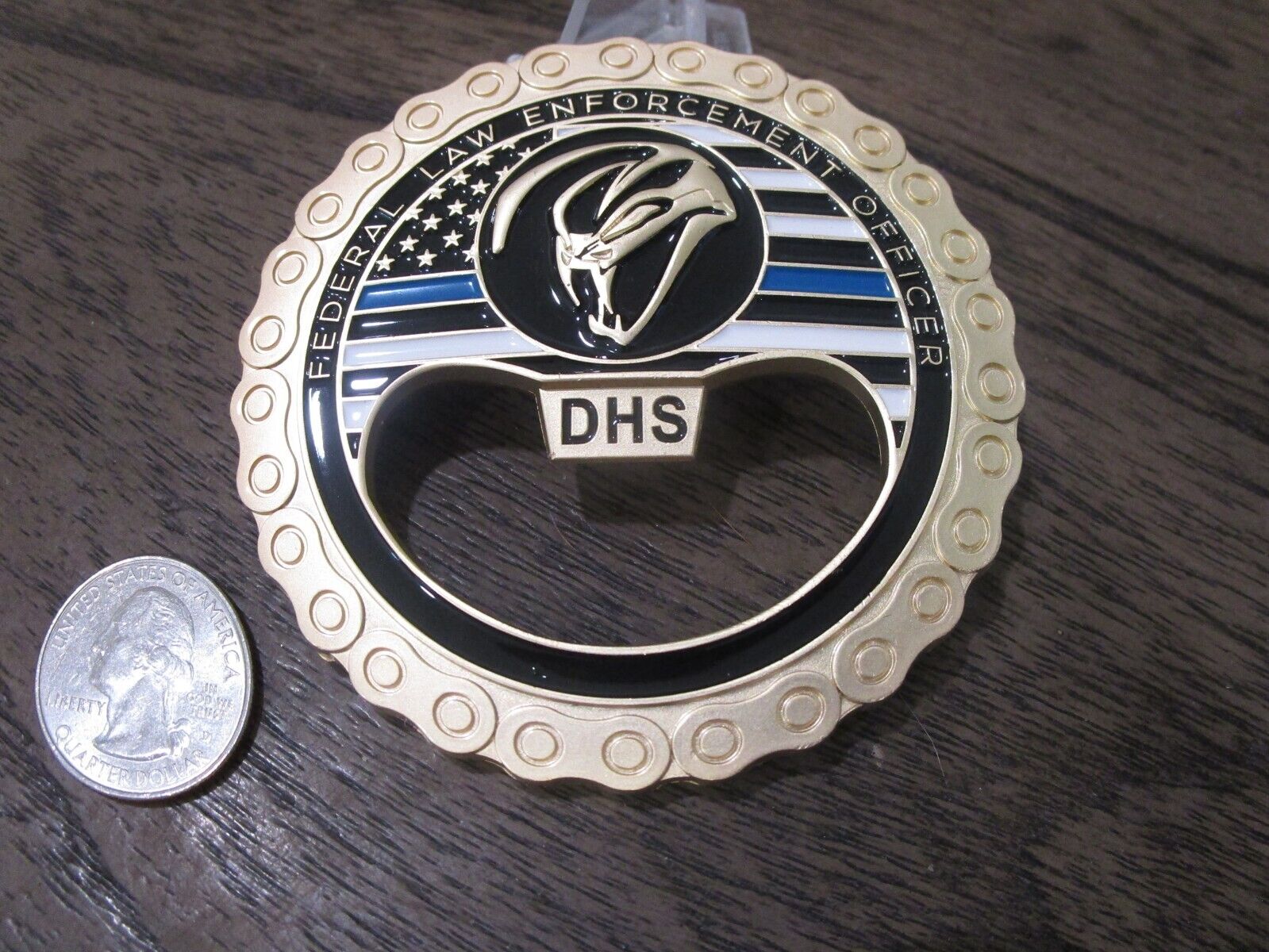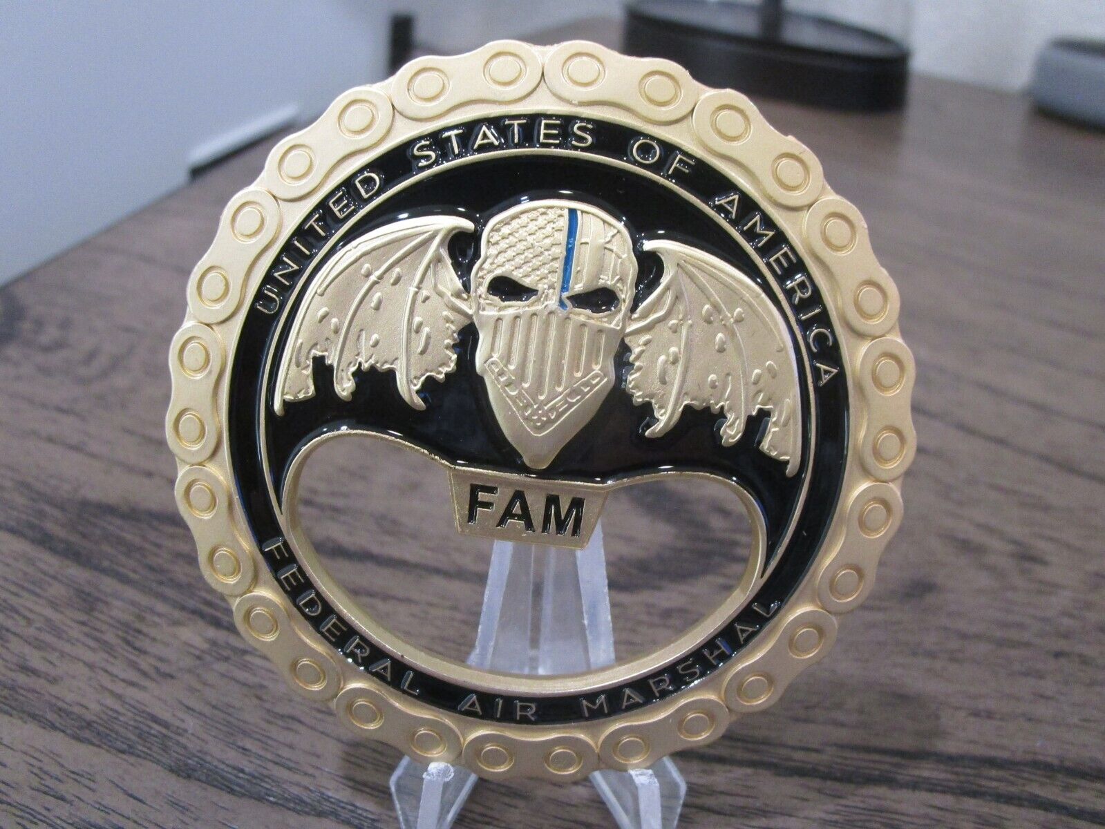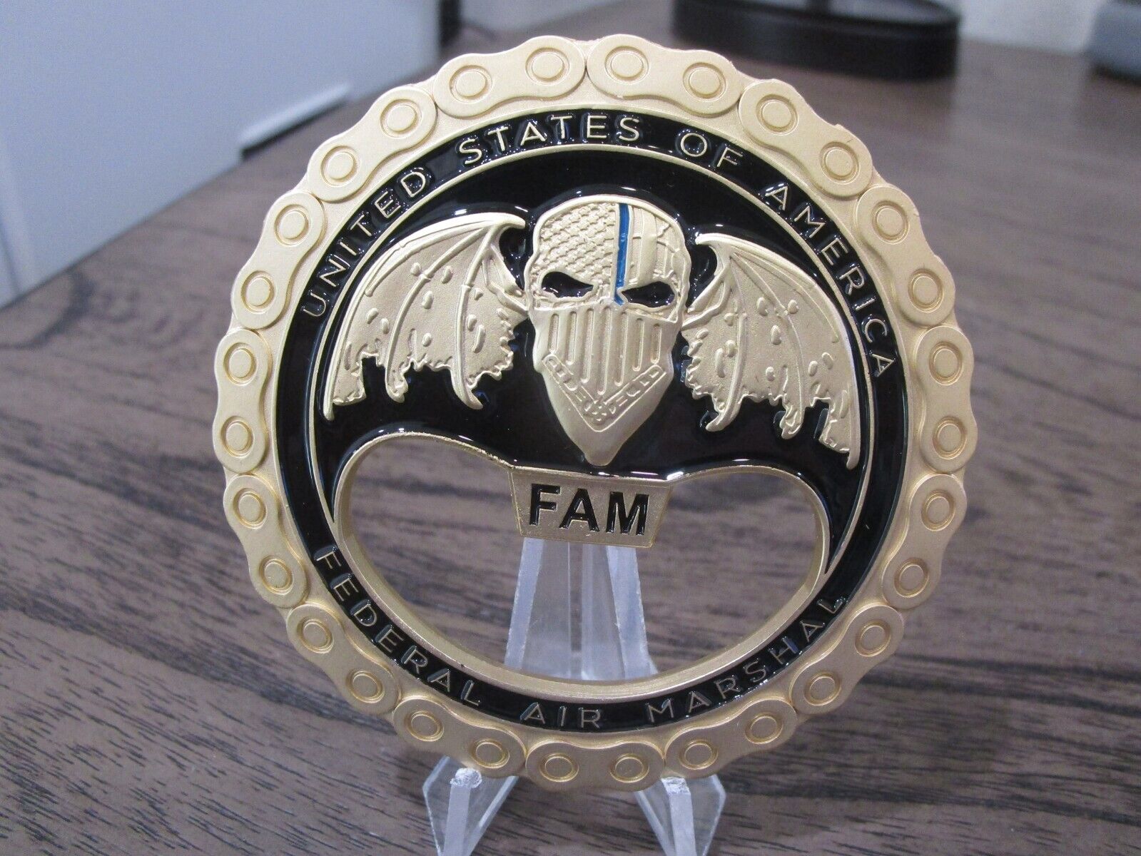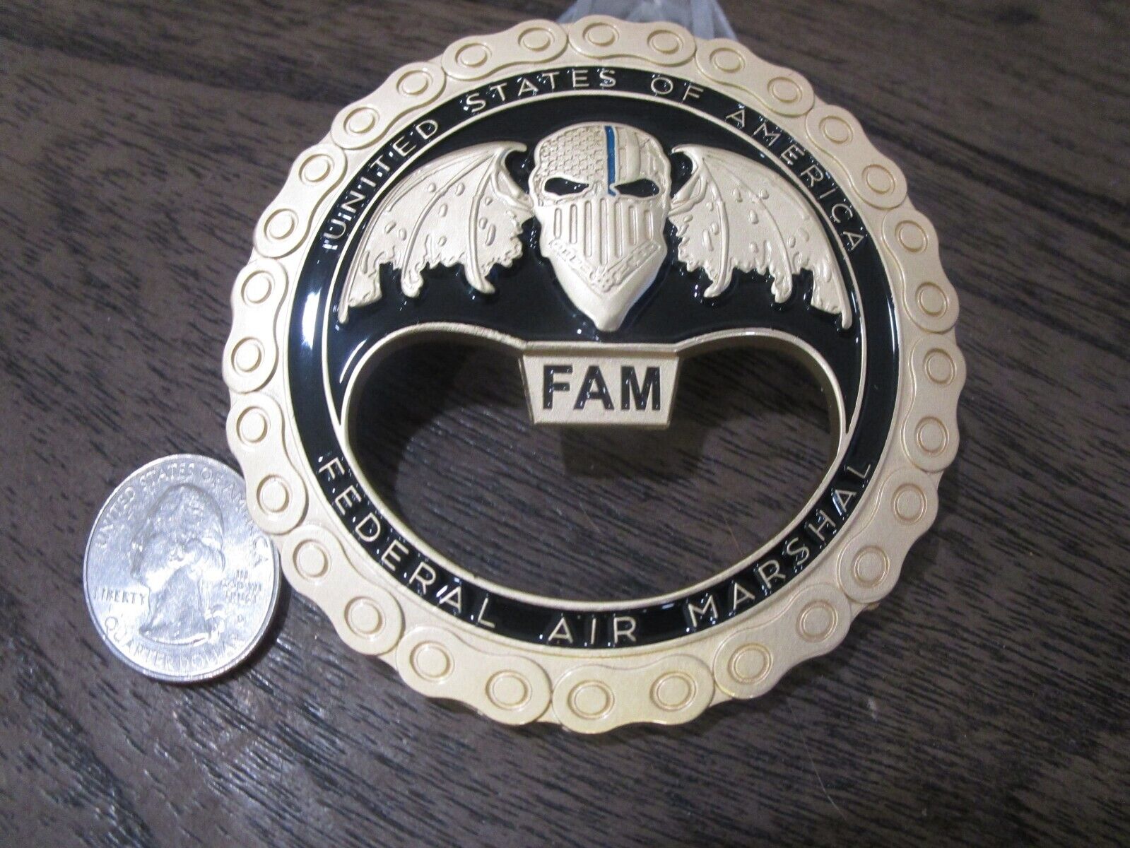 FAM VIPR Federal Air Marshal Visible Intermodal Prevention and Response Team Winged Punisher Challenge Coin / Bottle Opener (gold) #479Q