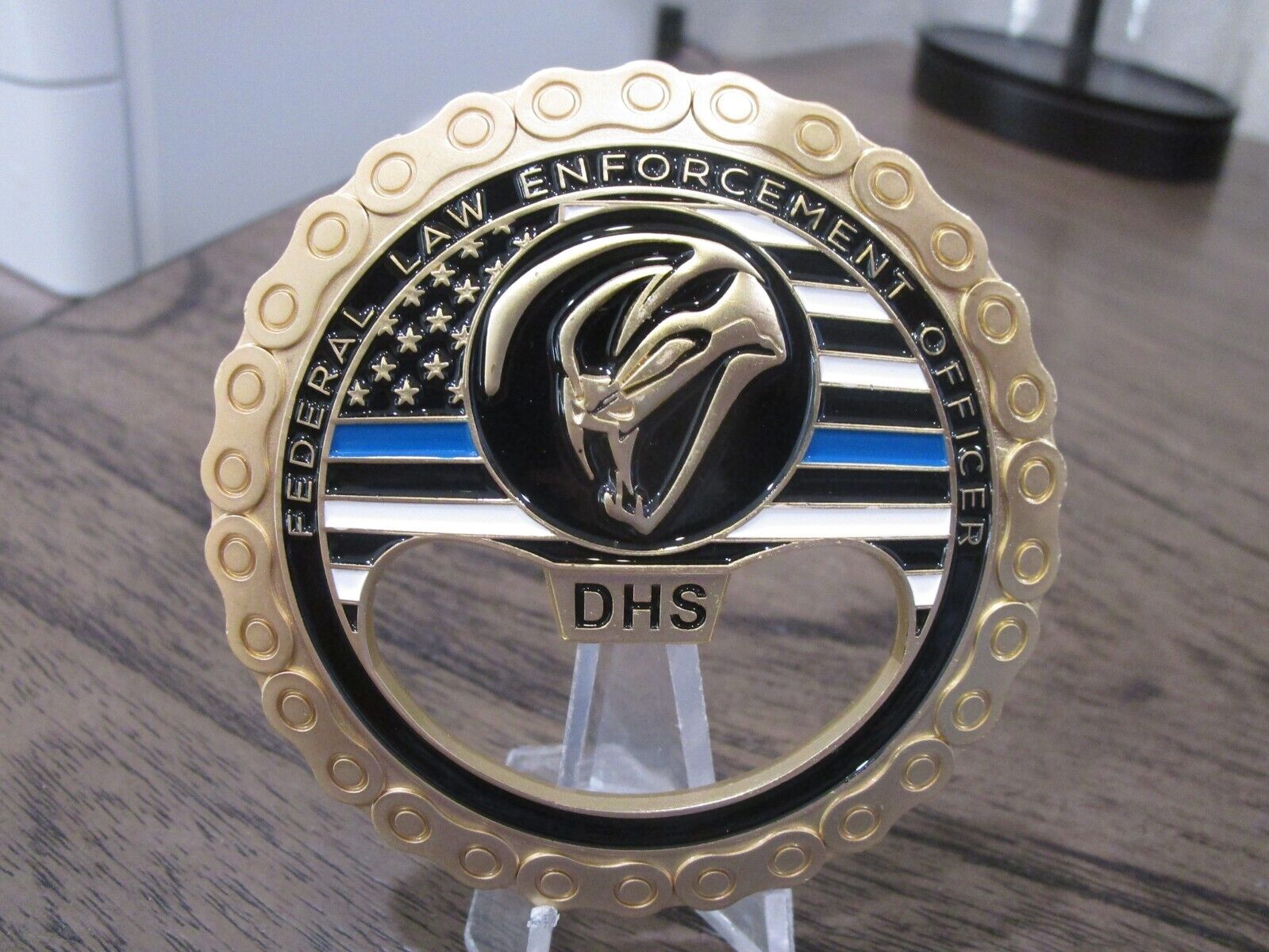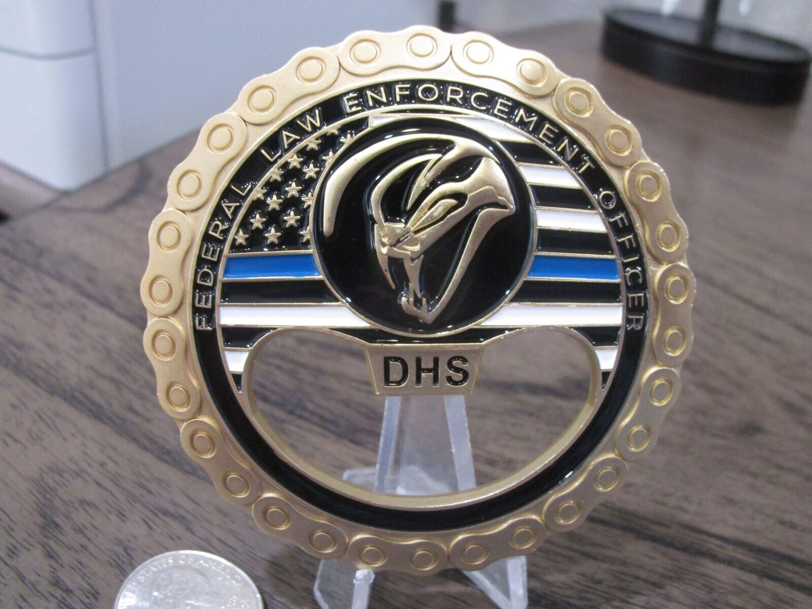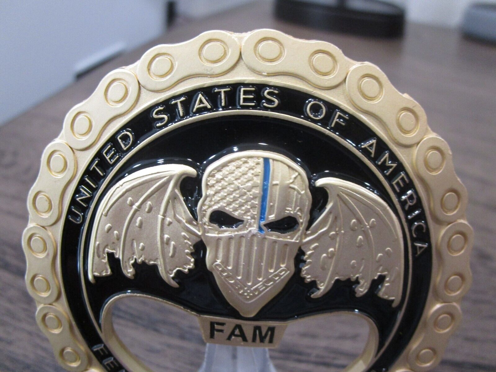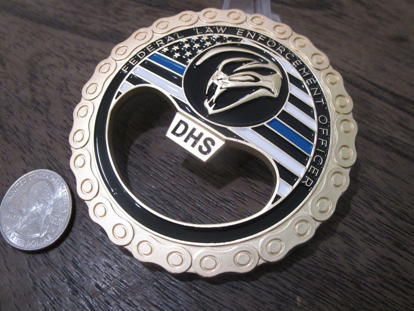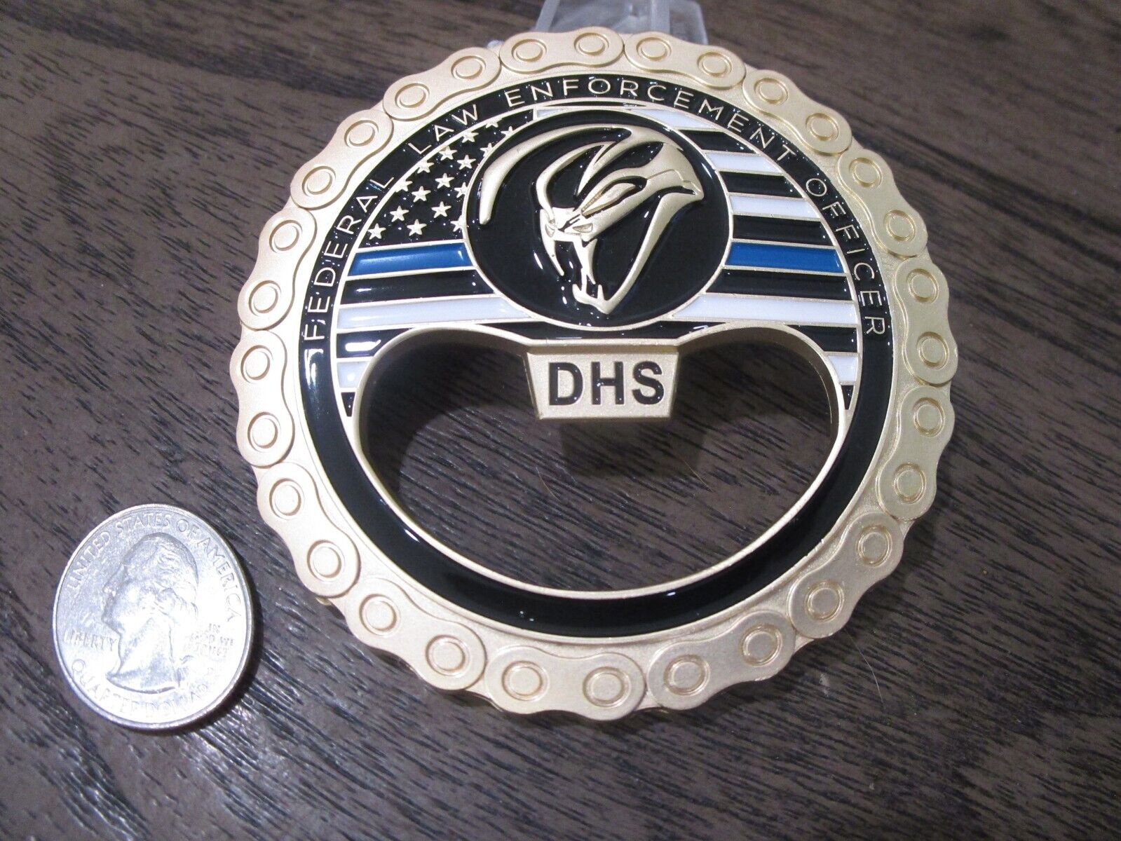 FAM VIPR Federal Air Marshal Visible Intermodal Prevention and Response Team Winged Punisher Challenge Coin / Bottle Opener (gold) #479Q